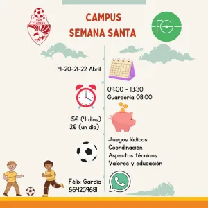 El C.D. Son Cladera organiza esta próxima semana santa un campus, del 19 al 22 de Abril, desde las 09:00 a las 13:30, también contara con guarderÃa a partir de las 8:00 h.