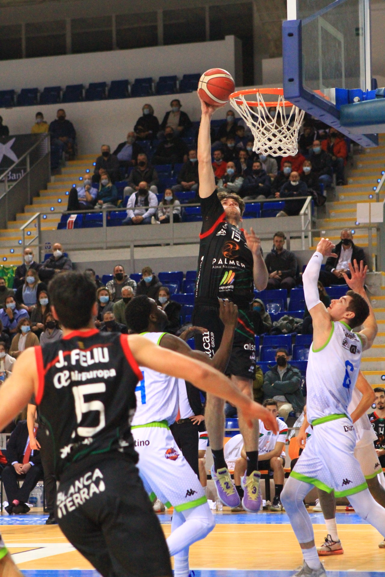 Joan Feliu igualaba la contienda a 54 a cuatro minutos para el final del cuarto. Du-rante esos cuatro minutos ningún equipo daba su brazo a torcer y finalmente se lle-gaba al final del tercer parcial con 60-62 para los locales. El último cuarto iba a ser vibrante iniciándose con ventaja para el Easycharger Palencia que se colocaba con 61-66 tras anotar Blumbergs. Llegaba entonces un parcial de 9-0 para los mallorqui-nes que volteaban el partido y colocaban el duelo en 70-66 a falta de cuatro minutos y medio para el final y seguían peleando para llevarse la victoria ante un Easycharger Palencia que no se daba por vencido y lograba igualar el partido a 76 mandándolo a la prórroga tras unas jugadas en las que el Palmer Alma Mediterránea Palma tuvo el partido en sus manos.