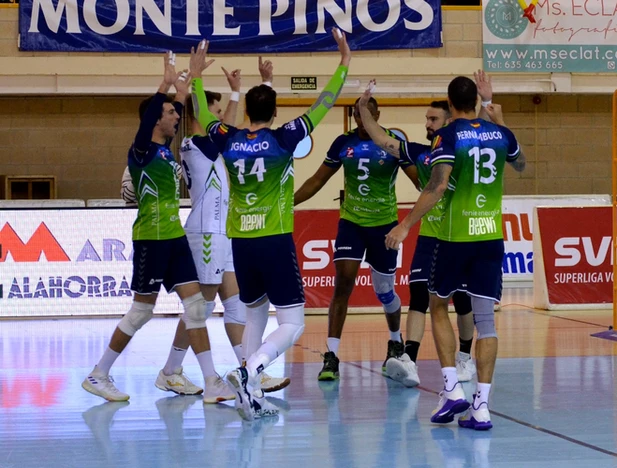 A los mallorquines el partido se les ponía cuesta arriba. Muy arriba. La reacción tenía que ser inmediata si querían intentar pelear por la victoria en la tarde del sábado. Tal y como pasó en los dos sets anteriores, el inicio de la manga por parte de los de Abel Bernal fue magnífico, dibujando un 1-5 en el marcador que, a medida que se fue desarrollando el set, se ampliaría hasta el 11-17. La renta parecía suficiente como para encaminar la manga de manera tranquila e intentar encontrar la mejor versión del equipo, pero Río Duero Soria reaccionó y apretó la manga con un 20-23. El partido entraba en un momento decisivo y en ese instante salió la garra balear para cerrar una manga que le metía de lleno en el encuentro.