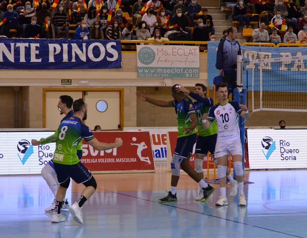 El Feníe Energía Mallorca Voley Palma visitaba el Pabellón Municipal de Los Pajaritos con el pase a la semifinal del playoff en juego. Con la ventaja de haber ganado en Son Moix el pasado fin de semana, los de Abel Bernal se enfrentaban a Río Duero Soria con la mentalidad de sacar la eliminatoria en este mismo partido, ya que eran consciente de que si la serie se alargaba al tercer partido las posibilidades de estar en la semifinal se reducían considerablemente. Es por ello por lo que el inicio del partido de los baleares fue una declaración de intenciones colocándose con un 1-4 y marcando territorio desde el inicio. A pesar de mantener la ventaja hasta mediados de set, los sorianos igualaron la manga con un 16-16, momento en el que los locales lograron ponerse por delante por primera vez en el partido. A partir de ahí, Río Duero Soria se sintió más cómodo sobre la pista y lo transformó ganando el set, aunque no tranquilamente, ya que los de Palma estuvieron cerca en el marcador en todo el momento.
