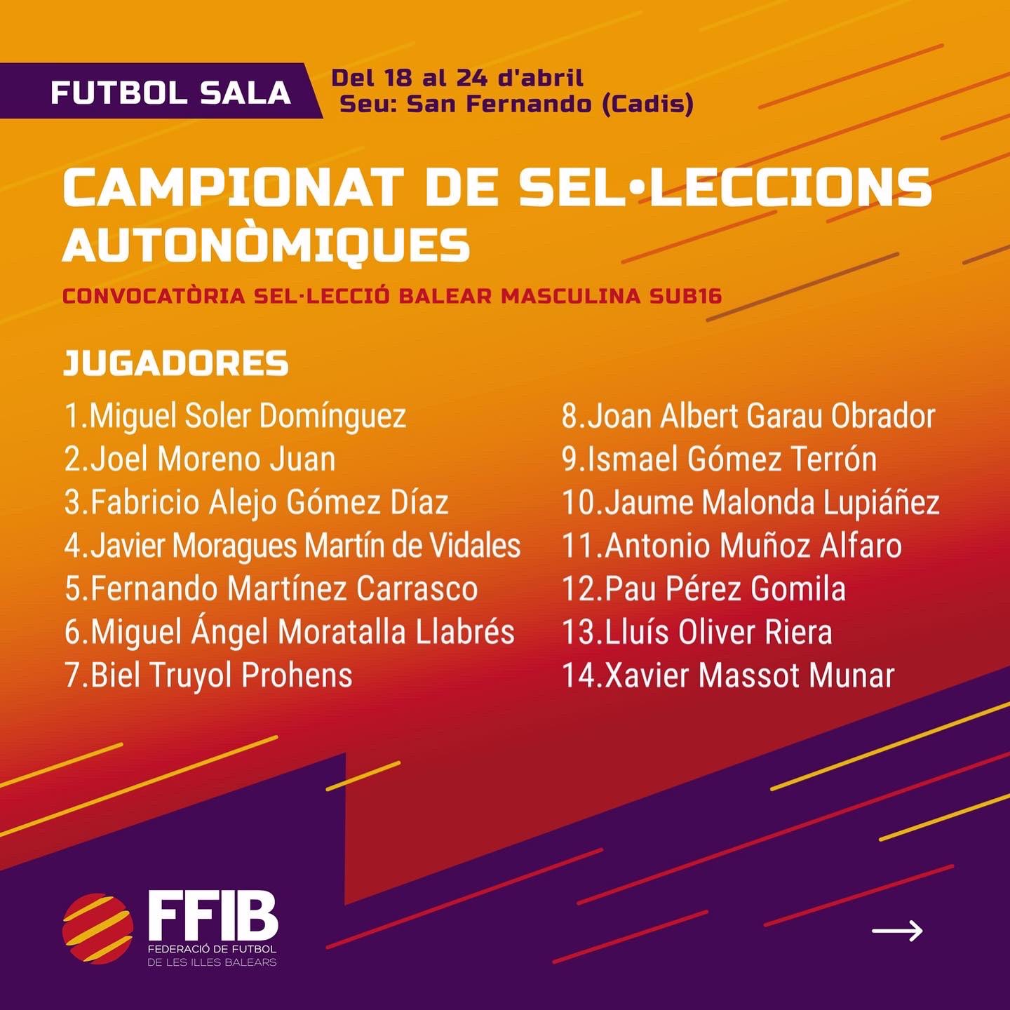 Campeonatos Selecciones Autonomicas Futbol Sala SUB-16 LISTA DEFINITIVA (ILLES BALEARS)