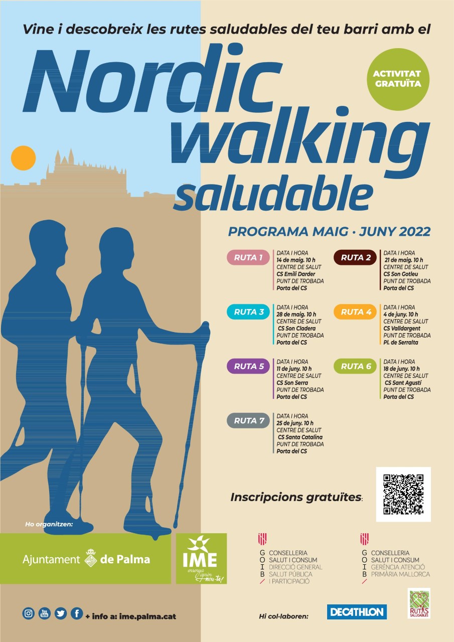 El programa arrencarà aquest dissabte, 14 de maig, al Centre de Salut Emili Darder i continuarà tots els dissabtes per diferents centres de salut de Palma fins al 25 de juny. És una activitat completament gratuïta i es posa a disposició dels participants el préstec de bastons. A més, se’ls obsequiarà amb una camiseta del programa, gràcies a la col·laboració de Decathlon.