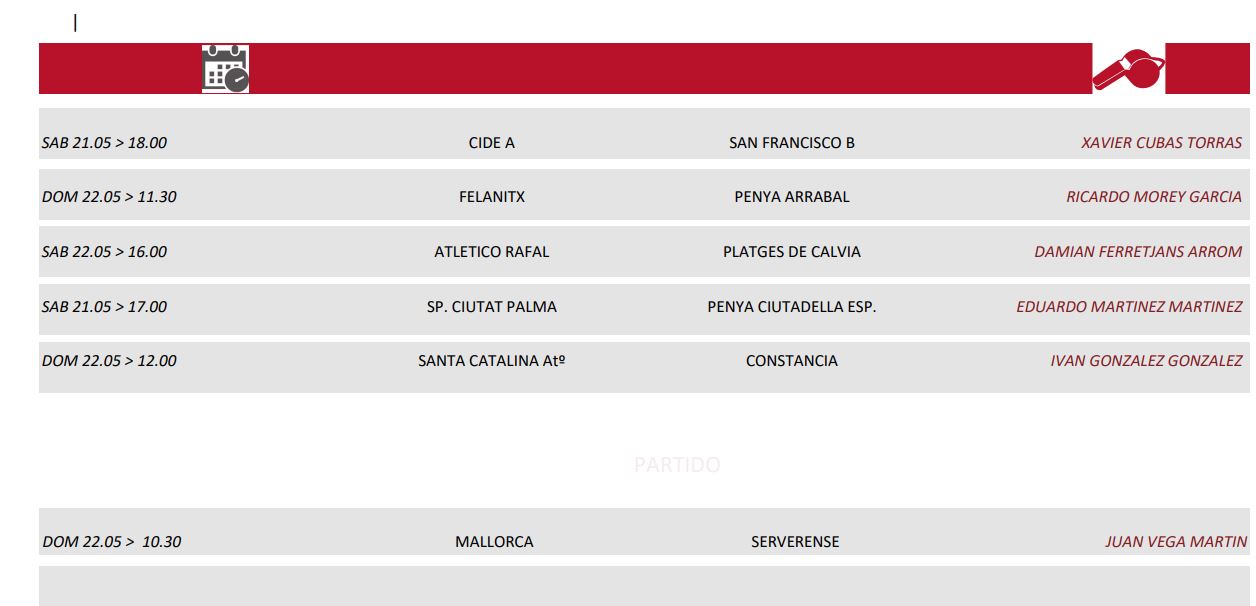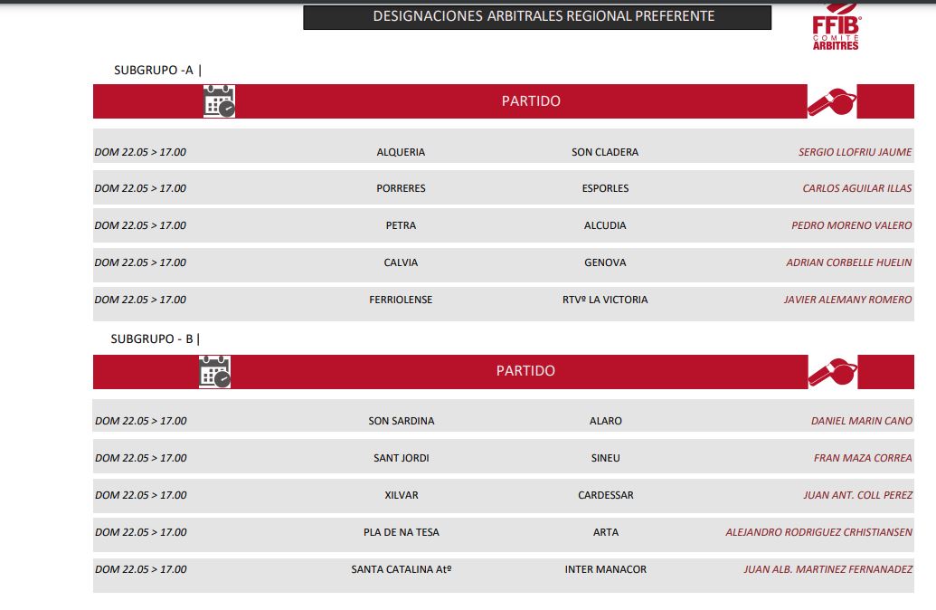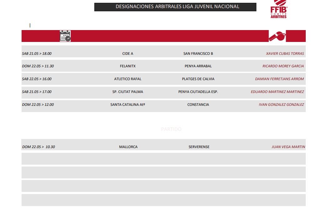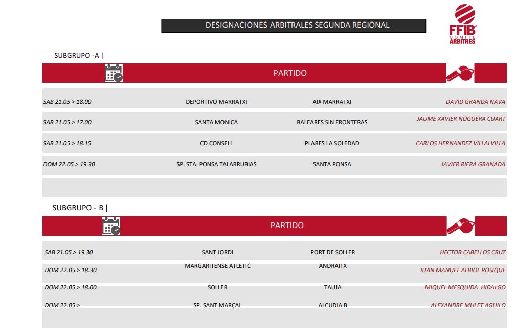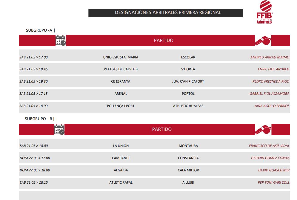 Designaciones arbitrales 21 y 22 de Mayo