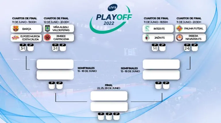 - VUELTA CUARTOS DE FINAL: PALMA FUTSAL – RIBERA NAVARRA FS, sábado 11/06/2022 a las 20:30 horas LaLigaSportsTVPlus.