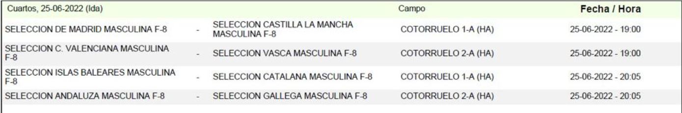 • Grupo C (Campo 1): País Vasco, Murcia, Extremadura, Madrid y Ceuta (solo masculina)