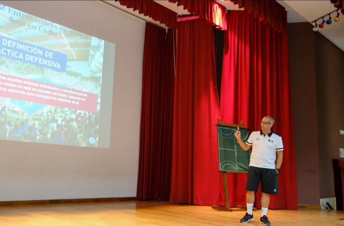 Antonio Vadillo impartiendo un clínic para entrenadores en Cádiz en el I Clinic Futsalcoach “Ciudad de Cádiz”