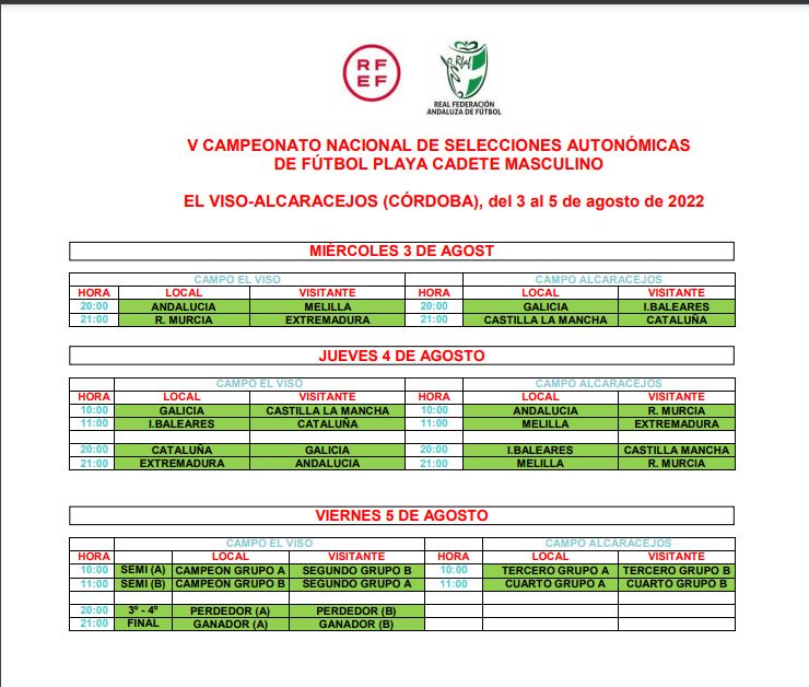 Campeonato de España infantil y Cadete de Fútbol Playa Masculino 3,4 y 5 Agosto (Cordoba)