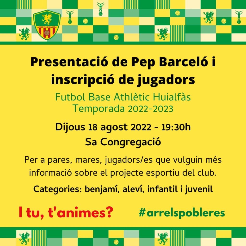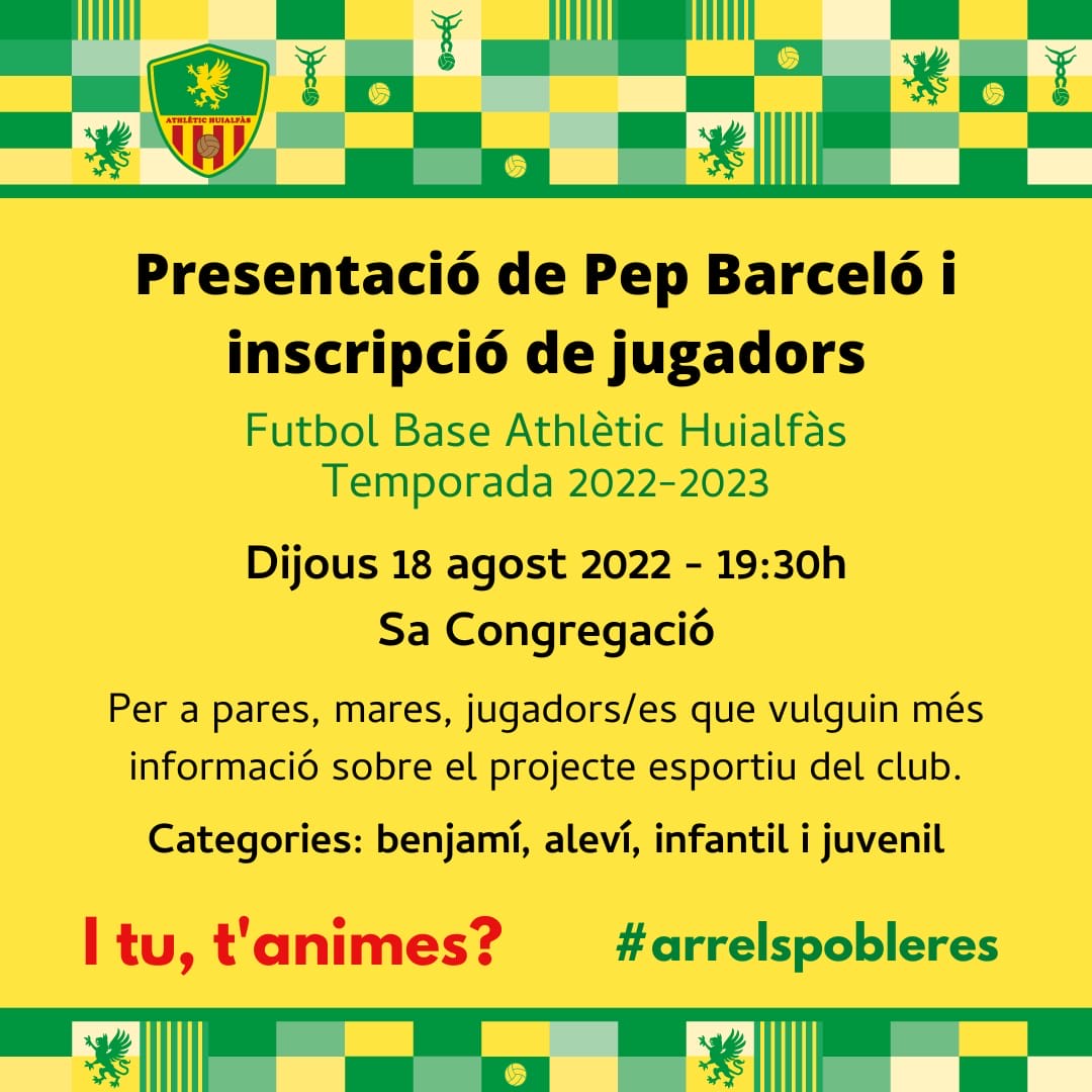 Athletic Huialfas ; Presentació Pep Barceló I captació jugadors (Hoy Jueves 19,30 Hrs)
