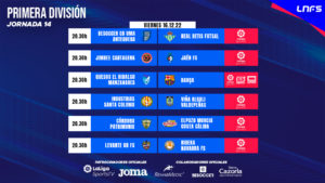 También con las cámaras de LaLigaSportsTV como testigo se enfrentarán Jimbee Cartagena y Jaén FS. Separados por tan solo un punto y con la clasificación para la Copa de España ya amarrada, el objetivo de ambos será terminar la primera vuelta lo más arriba posible y poner el colofón a una buena primera vuelta. Los locales querrán seguir siendo fuertes en su pista, mientras que los jienenses aspiran a mantener una buena racha de resultados que les tiene sin perder desde la Jornada 6.