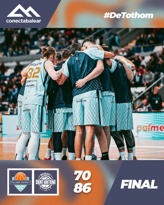 En el último periodo, el Sant Antoni mantuvo el nivel de acierto e hizo imposible la reacción de un Palmer Basket que no cesó en su empeño y lo siguió intentando. Un formidable Grimau aumentó las distancias en el tramo final y el marcador se disparó al 70-86. Resultado engañoso para el partido de alta intensidad que se vivió en Son Moix.