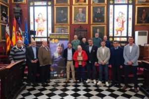 Una vez finalizado su discurso, Javier Bonet ha realizado la entrega a Amengual, en nombre del alcalde y de la Corporación municipal, de una placa conmemorativa