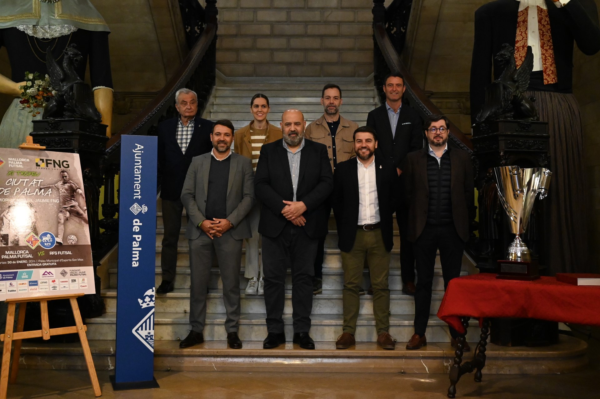 Este lunes, se llevó a cabo la presentación del torneo en el Ajuntament de Palma. Allí, estuvieron Jaime Martínez, alcalde de Palma, Javier Bonet, teniente de alcalde, Enrique López, CEO de FNG, y José Tirado, director general del Mallorca Palma Futsal.
