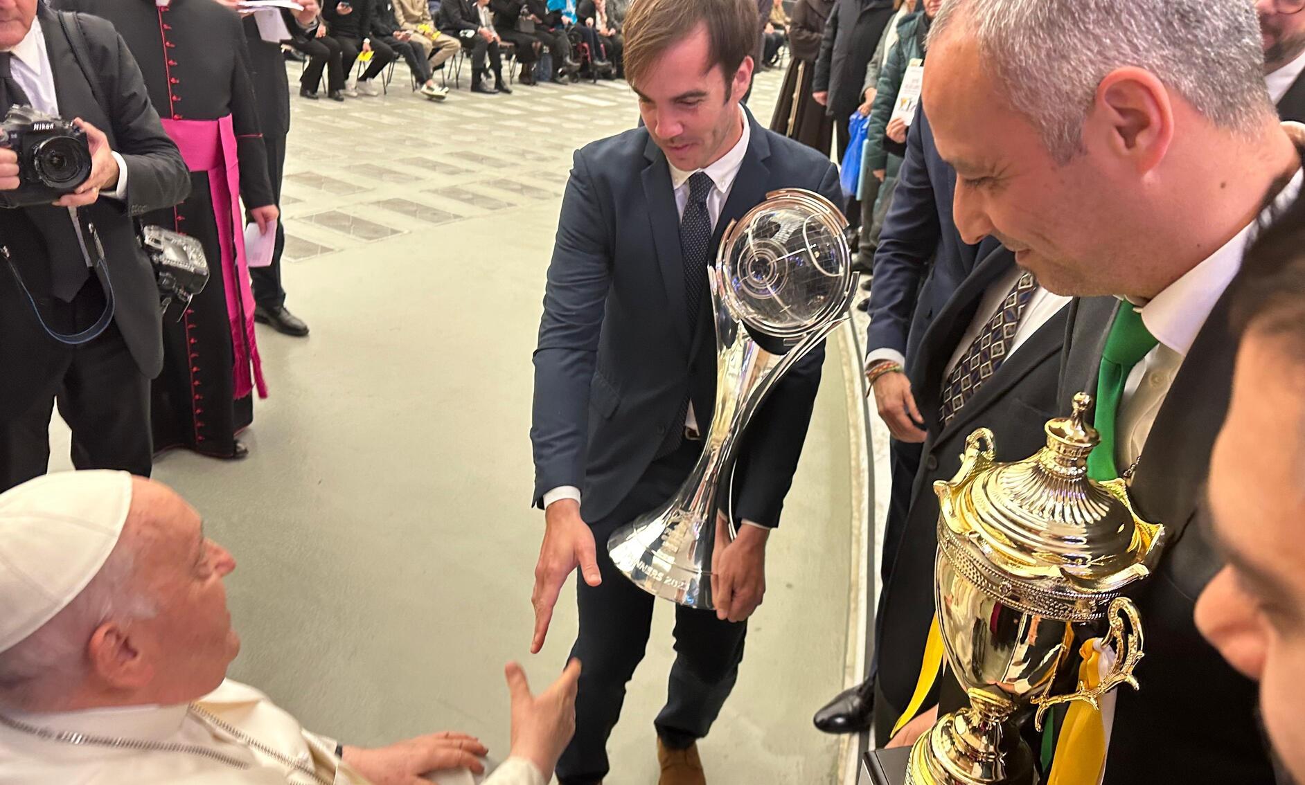 El Mallorca Palma Futsal ha vivido nuevamente una jornada histórica. Tras proclamarse vencedores de la UEFA Futsal Champions League y la Copa Intercontinental el pasado año 2023, el club balear ha destacado como uno de los principales protagonistas junto a diversas entidades, instituciones y personalidades de todo el mundo durante la audiencia general que lleva a cabo el Papa Francisco semanalmente en el Vaticano.