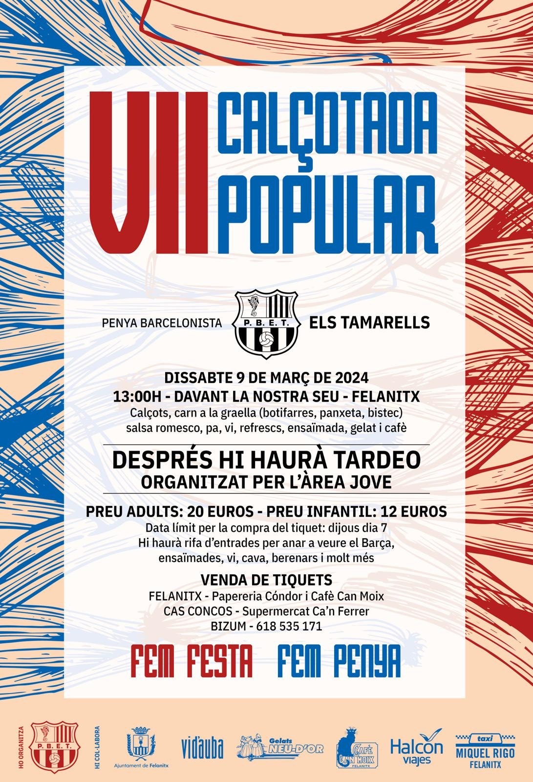 PB ELS TAMARELLS ARRIBA LA SETENA CALÇOTADA POPULAR Una cita ja tradicional en aquestes dates, serà el dissabte 9 de març, a les 13 hores a davant la nostra seu (c/Horts, 50), celebrarem la setena edició de la Calçotada Popular.