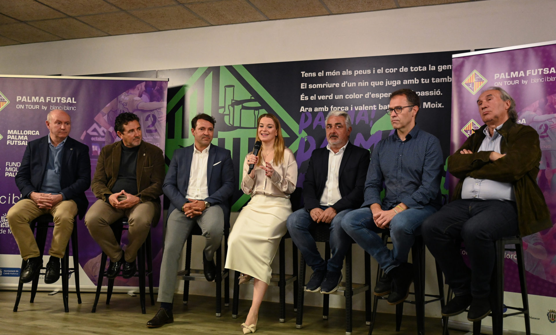 22 febrero 2024 | Por lorenzo | Categoria: Fútbol, Fútbol SalaEste jueves se presentó el «Mallorca Palma Futsal on Tour by Blanc i Blanc». Asistieron Marga Prohens y los alcaldes de Sóller, Calvià, Manacor y Pollença, los cuatro municipios que visitará el club. También estuvo Pere Cerdà, CEO de Blanc i Blanc, empresa patrocinadora de la iniciativa.