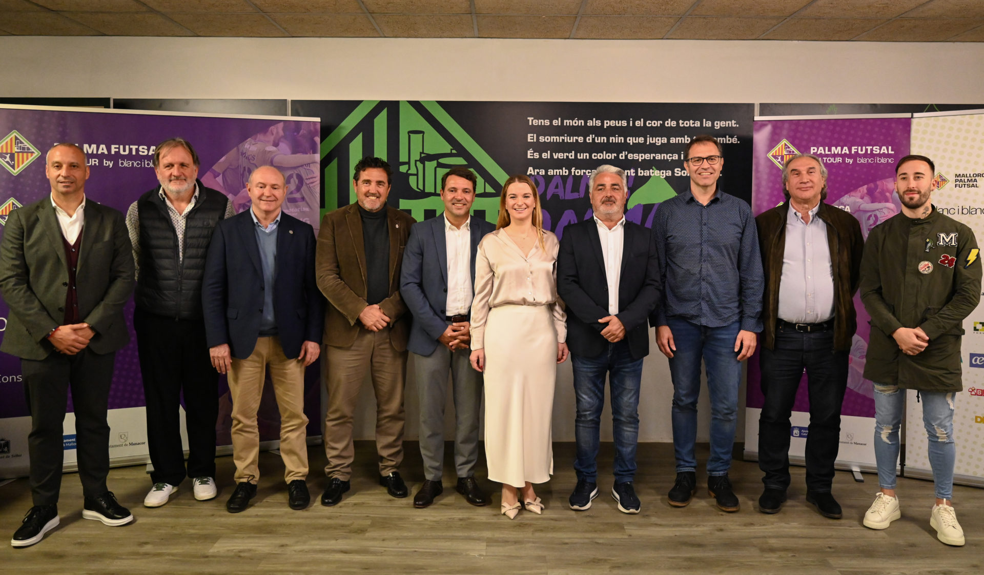 El Mallorca Palma Futsal y la Fundació Miquel Jaume ultiman los preparativos para el inicio de su gira por los pueblos de la isla, que dará comienzo el próximo martes bajo la denominación «Mallorca Palma Futsal on Tour by Blanc i Blanc». Esta iniciativa busca llevar un auténtico espectáculo a los niños de diferentes municipios, fusionando fútbol sala, música, baile, juegos y diversión. La presentación oficial tuvo lugar este jueves en el ‘Conecta Lounge’ de Son Moix y contó con la presencia de Marga Prohens, presidenta del Govern de les Illes Balears, Pere Cerdà, CEO de Blanc i Blanc, Miquel Nadal, alcalde de Sóller, Miquel Oliver, alcalde de Manacor, Juan Antoni Amengual, alcalde de Calvià, y Martí March, alcalde de Pollença. Representando al club estuvieron José Tirado, Antonio Vadillo y Mario Rivillos.