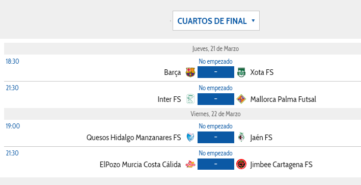COPA DE ESPAÑA FUTSAL; Mallorca Palma FS-Inter Movistar(J-21,30) Xota-Barcelona(J-18,30)
