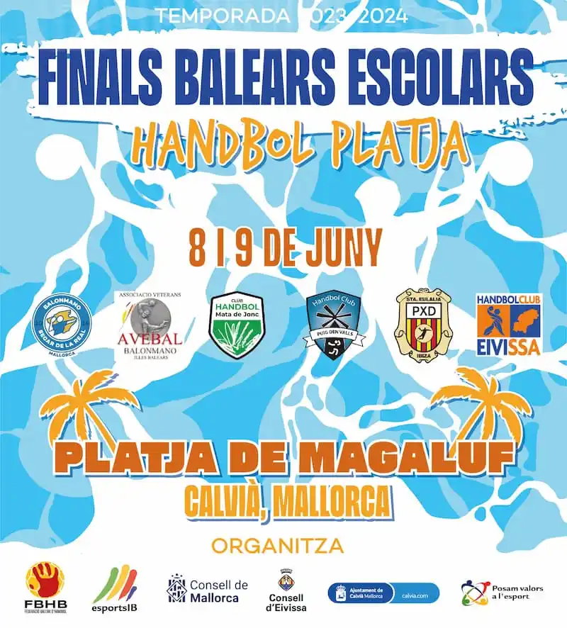Entre el 8 y el 9 de Junio se van a disputar las Finals Balears Escolars d’Handbol Platja en la playa de Magaluf, en el municipio de Calvià .