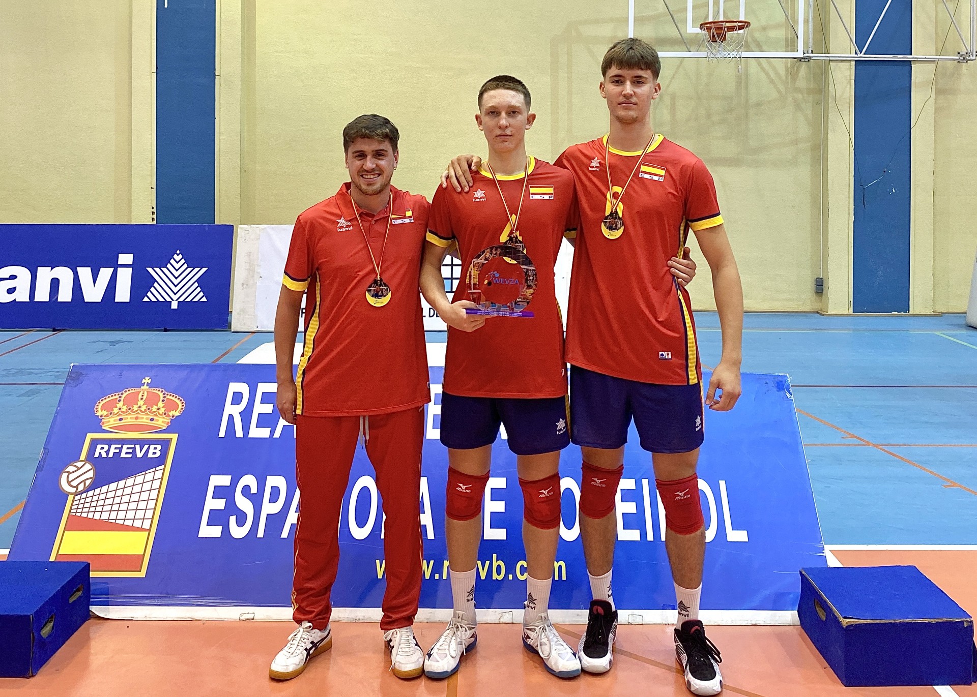 Triple oro continental para el voleibol balear en el WEVZA U18. Los jugadores Rafel Tugores y Dani Dezuttere y el técnico asistente Josep Tous han conseguido el tÃtulo europeo tras un torneo inmaculado. Con cuatro victorias de cuatro partidos, la selección española ha demostrado su superioridad esta semana en el Campo de la Juventud, en Palencia, barriendo de la pista a Portugal, Alemania y PaÃses Bajos en la fase de grupos y de nuevo a la selección lusa en la final. Con Tugores y Dezuttere en la pista y Tous en el banquillo, España ha conseguido desplegar un nivel prácticamente excelso de voleibol que le hace crecer de cara al Campeonato de Europa Sub18 que se disputa del dÃa 10 al dÃa 21 de julio en Bulgaria.
