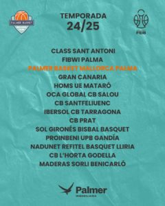 16 julio 2024 | Por lorenzo | Categoria: PolideportivoEl Palmer Basket Mallorca Palma ya conoce a sus rivales para la temporada 2024/25. El conjunto mallorquÃn volverá a competir en el grupo «este» de la tercera categorÃa del baloncesto nacional. El Palmer Basket se medirá a clubes de la Comunidad Valenciana, Cataluña y al Gran Canaria, además de a los equipos de las Islas Baleares, Fibwi Palma y Class Sant Antoni.