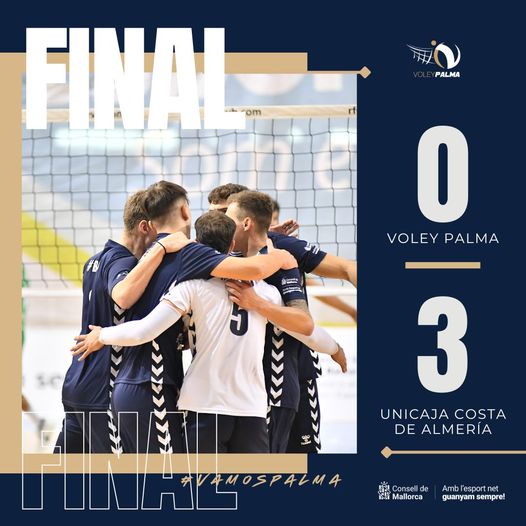 La tercera manga empezó con un imponente Fernando Fernández en ataque y un Voley Palma luchador (8-6). Los pupilos de López encadenaron una serie de acciones favorables y consiguieron un pequeño colchón de puntos (13-9). Sin embargo, con un par de aciertos y errores azules, Unicaja Costa de Almería empató y se puso por delante de nuevo (15-16). Lluc González entró en la cancha para aportar en defensa y conseguir volver a la igualada 18-18. Y, al final, Almería se adelantó de nuevo: 20-24. Y es que esta fue la tónica del partido: el Voley Palma trabajó mucho todos los puntos para conseguir una pequeña ventaja, mientras que, cuando se despistaban un segundo, los de Almería encadenaban fácilmente una serie de puntos y recuperaban la distancia. Los mallorquines consiguieron salvar tres bolas de set, pero el resultado fue 23-25 para los andaluces.