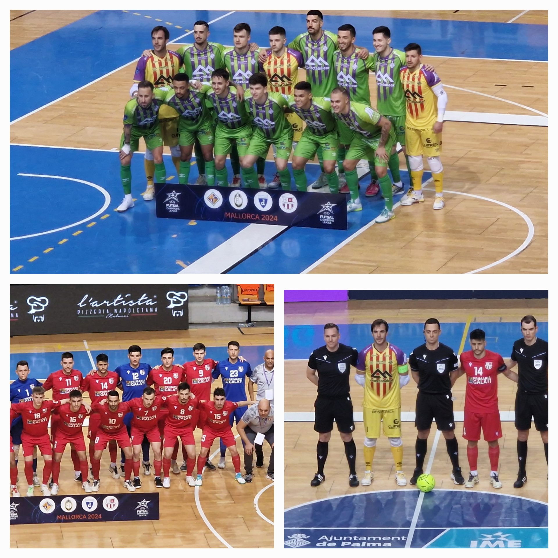 vestuario con una goleada. El meta español del United GalatÃ, VÃctor López, fue decisivo para mantener a su equipo en el partido con intervenciones de mérito como una parada sobre la lÃnea al detener un remate de espuela de Bruno Gomes a bocajarro tras desviar un lanzamiento de Luan. Y si no era el portero, el palo. Neguinho se topó con la madera en un lanzamiento lateral tras una gran jugada colectiva. El repertorio de los insulares es extraordinario, con tiro exterior, juego combinativo y talento para manejar la pelota. Faltaba la eficacia ante la porterÃa rival. Maia tuvo el segundo en un remate que se marchó pegado al palo tras cortar una salida de balón del rival y Ernesto tuvo una doble ocasión para ampliar la ventaja. David Peña y Marcelo también tuvieron ocasiones claras pero no acertaron a culminar. El mayor problema del Illes Balears Palma Futsal era el marcador, demasiado corto teniendo en cuenta la gran cantidad de ocasiones generadas, y el cansancio acumulado jugando el cuarto partido en ocho dÃas. La salida de vestuarios mostró el orgullo del conjunto rumano, que salió valiente y empujando a los locales a su porterÃa para poner en peligro la meta de Luan Muller, que salvó el gol en la primera acción con una gran parada en el primer palo. Después de unos primeros de dudas, los de Antonio Vadillo trataron de volver al guión de la primera mitad. Rivillos tuvo dos ocasiones para marcar el segundo sin fortuna y el meta rival voló para detener una volea de Fabinho firmando una gran parada. Son Moix no se podÃa creer que el marcador solo reflejara un gol. Incluso, una acción en la frontal de Maia terminó con el balón paseando por dentro del área sin que nadie lo pudiera rematar. IncreÃble. DifÃcil de explicar. La insistencia tuvo su premio, otra vez en una jugada a balón parado que los jugadores bordaron. Fabinho sirvió para Rivillos engañando a la defensa rival y éste dejó de cara de nuevo al brasileño, que soltó un derechazo que acabó con el balón besando las mallas. Son Moix lo celebró viendo más cerca el objetivo de esta primera fase a falta de un partido. Ernesto falló una a puerta vacÃa antes de que Fabinho marcara su doblete personal desde el punto de penalti apenas un minuto después de su primer tanto en el partido. El tercer gol ya fue una losa para el rival y aire para los locales, que vieron como la necesidad del rival, jugando ya con portero jugador, generaba más espacios en pista. Los locales tuvieron ocasiones para ampliar la ventaja de forma considerable pero el partido se cerró con el gol de Luan Muller, que fue el que acertó desde su propia área para marcar a puerta vacÃa tras recuperar el balón en su porterÃa y culminando un partido soberbio, con paradas de mucho nivel y liderando el equipo desde la porterÃa.Â