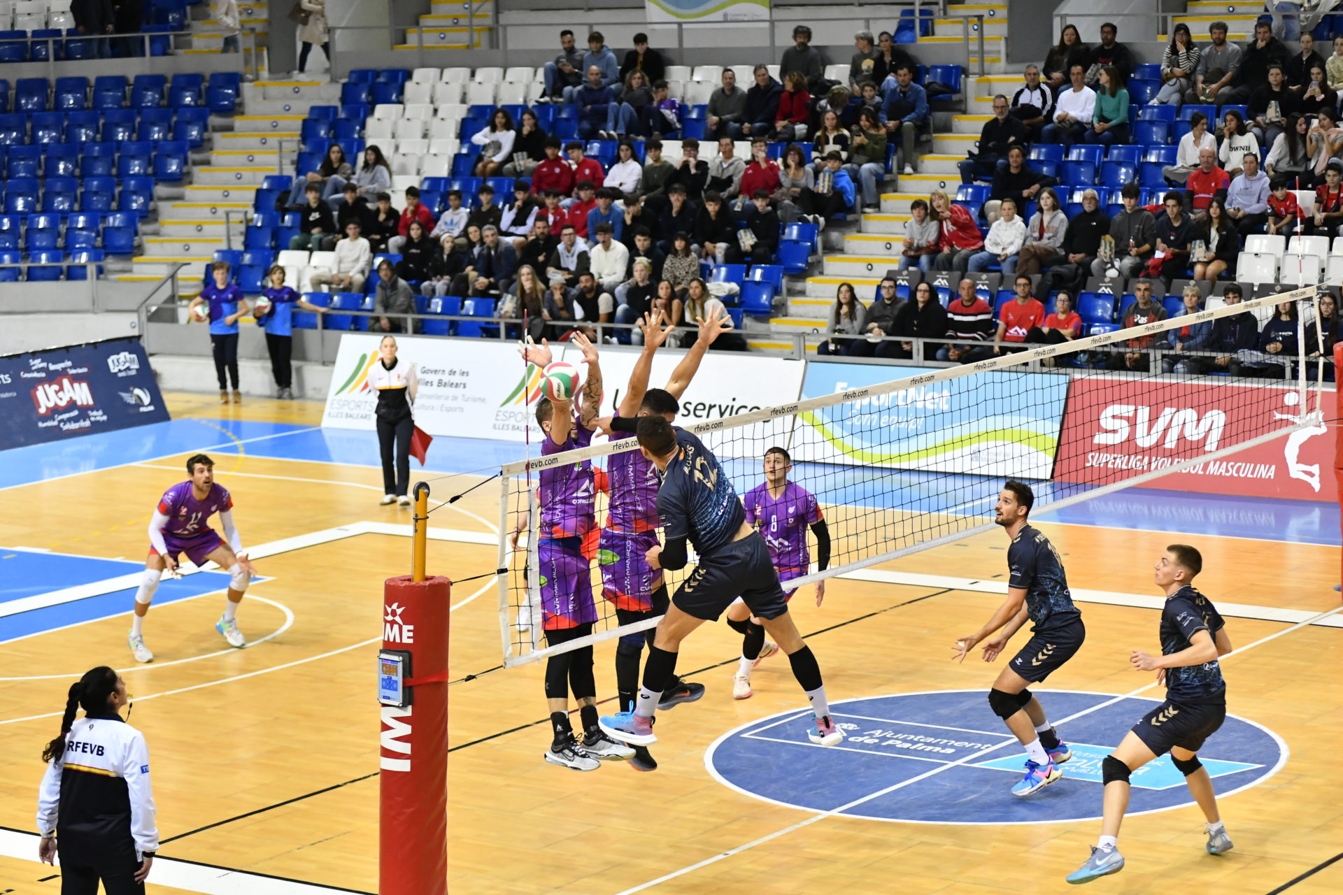!!)) El equipo de Ciutat dio la talla y miró a los ojos al líder de Superliga, pero no consiguió sumar en casa. El derbi de voleibol balear terminó 1-3 para los manacorins