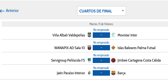 Los enfrentamientos de los cuartos de final de la Copa de S.M. El Rey son los siguientes: