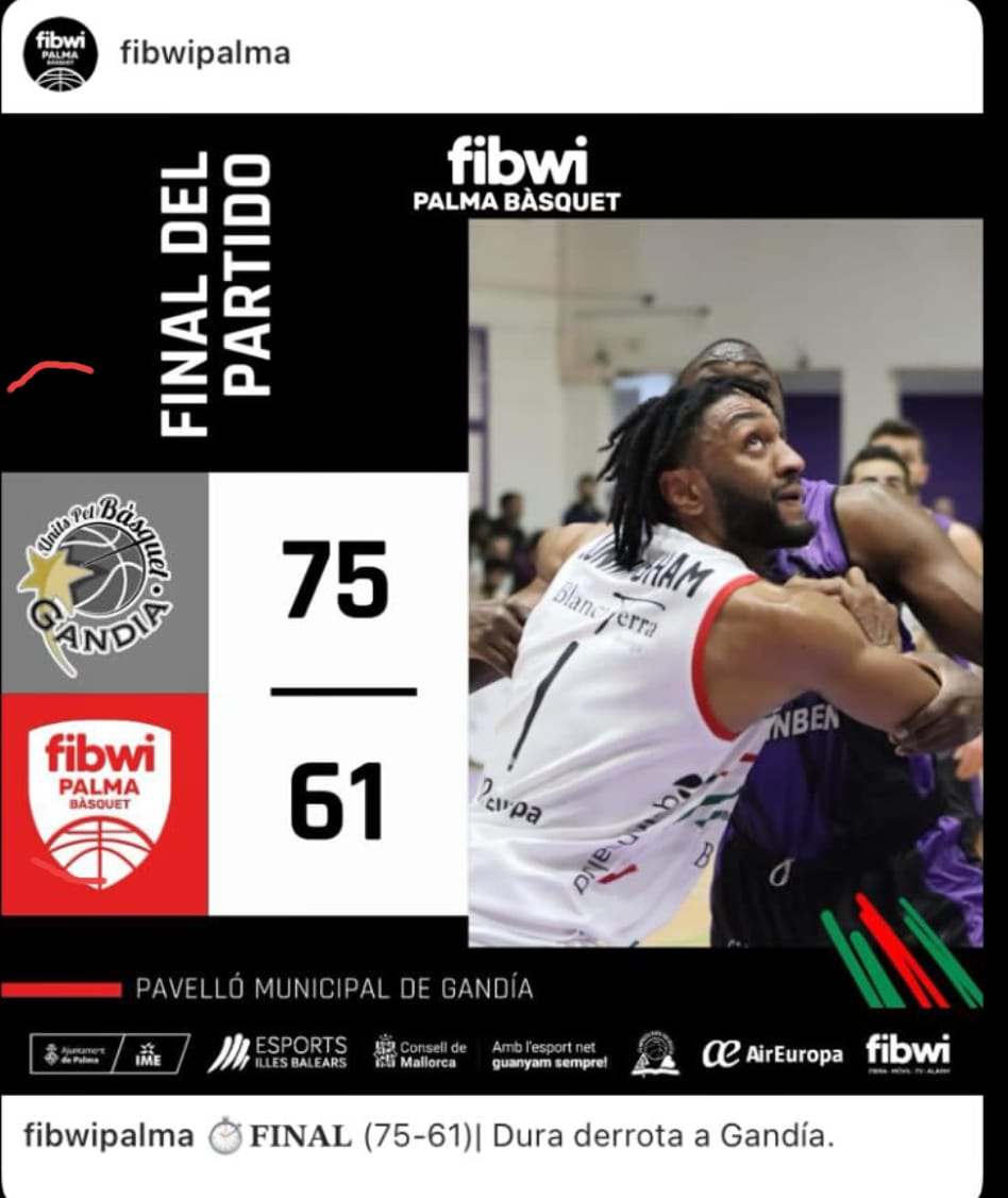 El Fibwi Palma Bàsquet ha caído hoy en Gandía por 75-61 en un partido en el que los mallorquines han pagado su irregularidad y no han estado cómodos en ningún momento. Sufría el Fibwi Palma Bàsquet en el inicio de partido con el acierto exterior de los locales que se situaban con un claro 16-6 en el electrónico ante un fallón Fibwi Palma Bàsquet que se veía superado por el empuje de los locales obligando a Pablo Cano a parar el partido cuando el marcador señalaba un duro 18-6. Se iba a recuperar el equipo de Pablo Cano de su irregular inicio con unos buenos minutos de juego en los que destacaba la figura de Jon Ander Aramburu para imprimir carácter y garra al juego del equipo y, con cinco puntos consecutivos, recortar distancias en el marcador cerrándose el primer cuarto con 23-15.