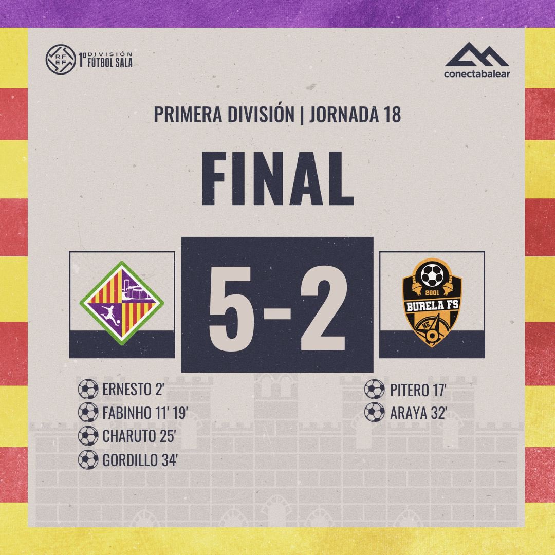 El Illes Balears Palma Futsal vence por 5-2 a Burela FS y se mantiene en la zona alta de la clasificación. Los de Antonio Vadillo mandaron en el marcador desde el inicio y, pese a que los de David Rial trataron de recortar distancias, no consiguieron parar a un Illes Balears Palma Futsal que dominó hasta el final. Los de Ciutat se consolidan así como mejor equipo local de la liga y amarran tres puntos importantes para seguir luchando por todo.