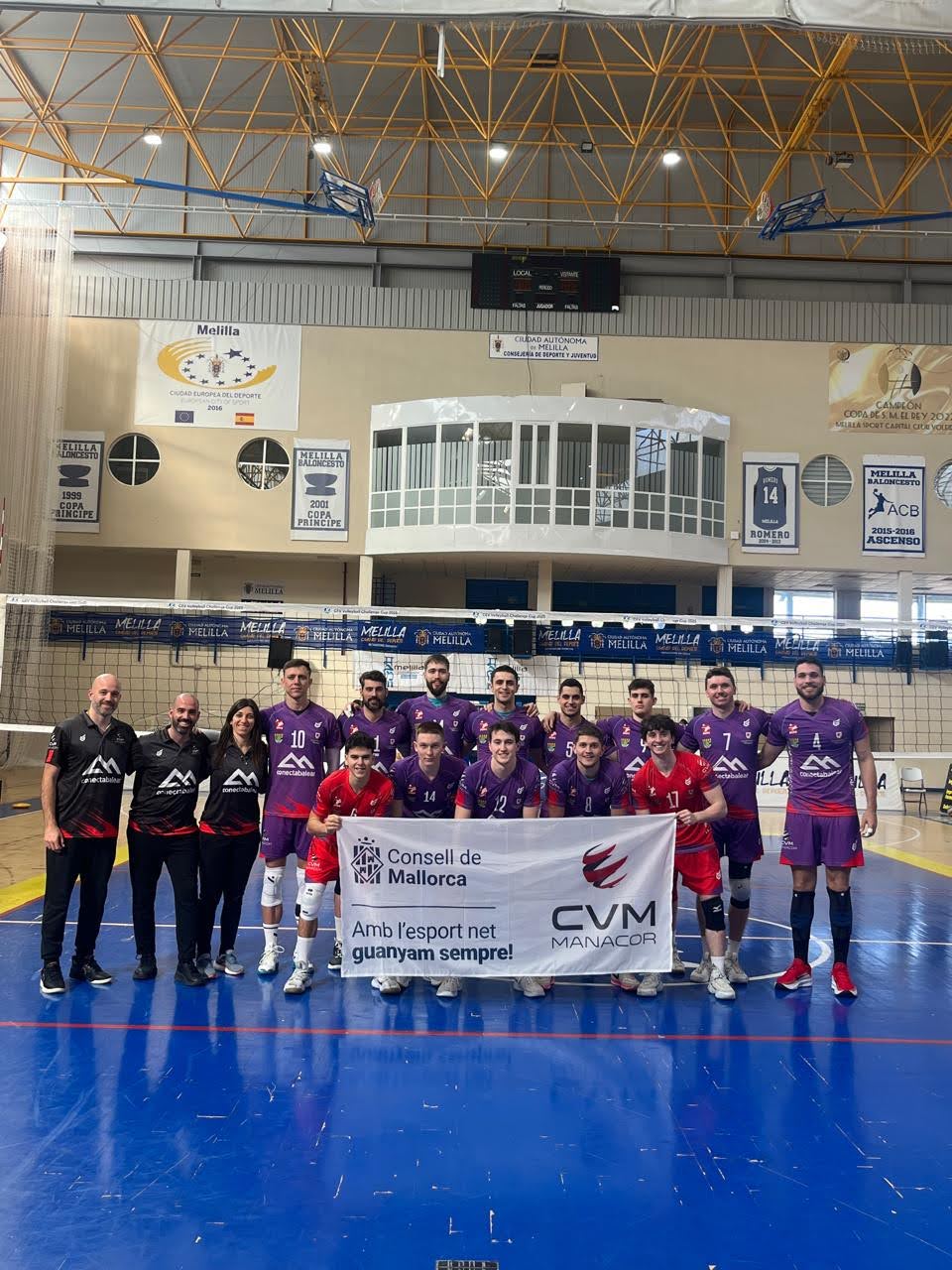 El ConectaBalear CV Manacor vence a Melilla por la vÃa rápida en un encuentro donde el bloqueo fue protagonista en muchas ocasiones. El Melilla fue de menos a más ante unos visitantes que mostraron intensidad y mentalidad de juego. En el tercer set, los de Abdelkader sacaron a relucir su potencial, pero poco pudieron hacer frente al fuerte ataque manancorÃ.
