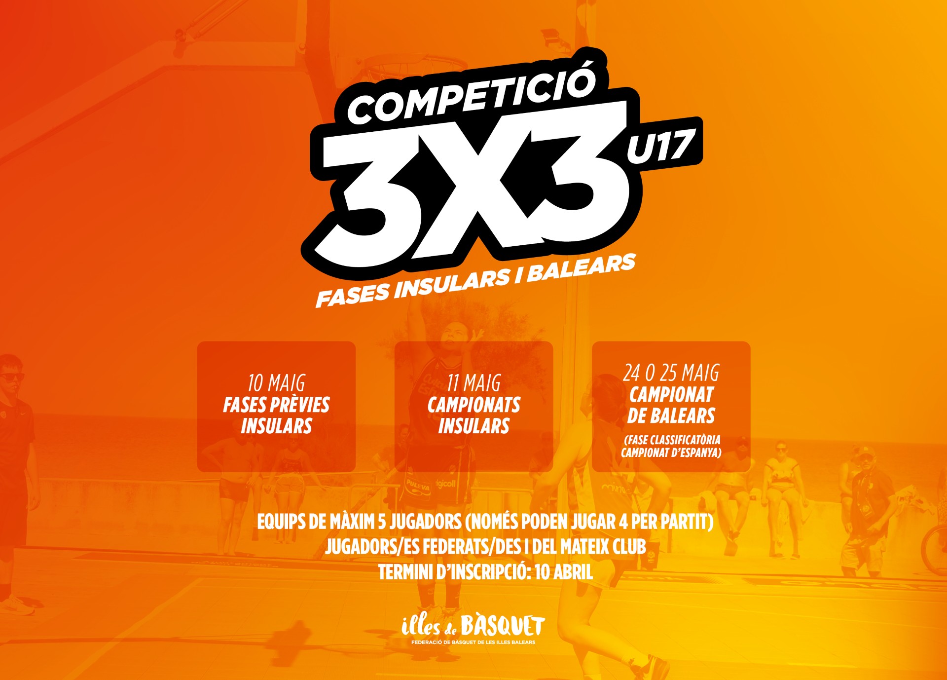 La FBIB vol donar un impuls definitiu a la modalitat del 3×3 i el sus d’aquest procés han de ser les competicions de clubs de categoria U17, que es disputa a nivell nacional per tercera temporada. AixÃ, la Federació ha dissenyat les seves competicions amb dues primeres fases a nivell insular i un Campionat de Balears que serà la fase final i la que repartirà els bitllets pel Campionat d’Espanya: