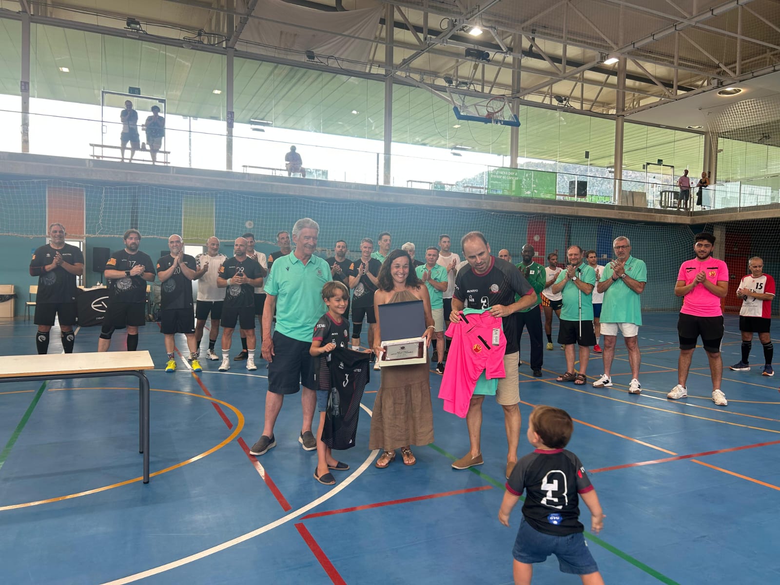 Durante la jornada también se hizo entrega de una placa conmemorativa a los familiares de Antoni Soberats, en reconocimiento a su incansable labor y a su legado dentro del balonmano balear.b