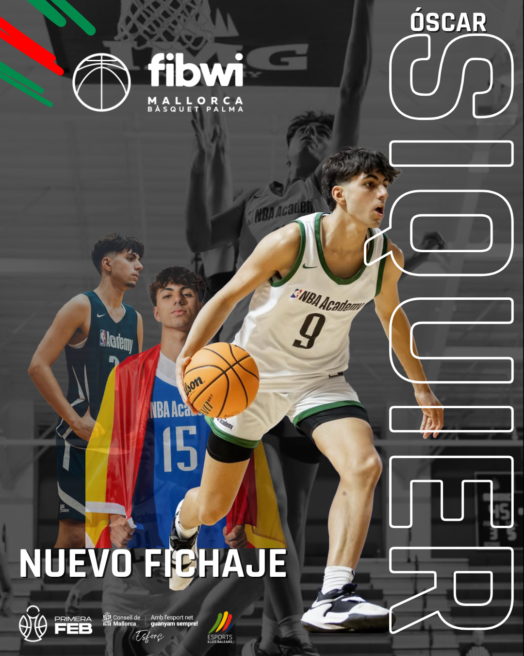 El Fibwi Mallorca Bàsquet Palma sigue dando pasos en la confección de la plantilla para esta temporada y ha cerrado la llegada de Óscar Siquier. El base, nacido en Palma en Febrero de 2006 mide 1,92 metros de altura y regresará esta temporada a España y a la isla tras su paso por la NBA Academy de Latinoamérica siendo el primer jugador español becado por la academia de la mejor liga del mundo. Allí, el nuevo fichaje del Fibwi Mallorca Bàsquet Palma ha trabajado de manera intensa para mejorar su juego disputando durante este 2025 un total de seis partidos en los que ha anotado una media de 12.86 puntos por encuentro, capturando 4,58 rebotes y repartiendo 3,43 asistencias por partido.