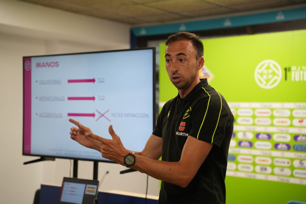 4 septiembre 2025 | Por lorenzo | Categoria: Fútbol, Fútbol SalaLa plantilla del Illes Balears Palma Futsal ha participado en una sesión informativa con el colegiado mallorquín de fútbol sala Diego Martínez, en colaboración con el Comité Técnico de Árbitros de la Federació de Futbol de les Illes Balears, para repasar las normas que regirán la Primera División 2025/26 y conocer de primera mano sus principales novedades. Tanto jugadores como cuerpo técnico estuvieron presentes en este encuentro, acordado entre el club y la Federació, con el objetivo de afrontar el inicio de temporada con la máxima claridad sobre el reglamento.