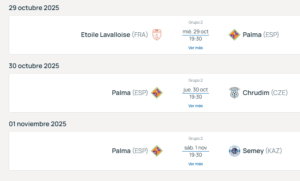 12 octubre 2025 | Por lorenzo | Categoria:Son Moix vivira otra semana de Champions en Son Moix con los siguientes equipos Illes Balears Palma (ESP, anfitrión/vigente campeón), Semey (KAZ), Etoile Lavalloise (FRA), Chrudim (CZE)