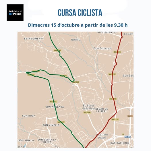 Paso de la carrera (a partir de las 11:30 h): La carrera entrará en Palma por Establiments y recorrerá zonas de Son Rapinya, como la calle Miquel Sureda i Blanes y el camí dels Reis, hasta la llegada en Son Moix.