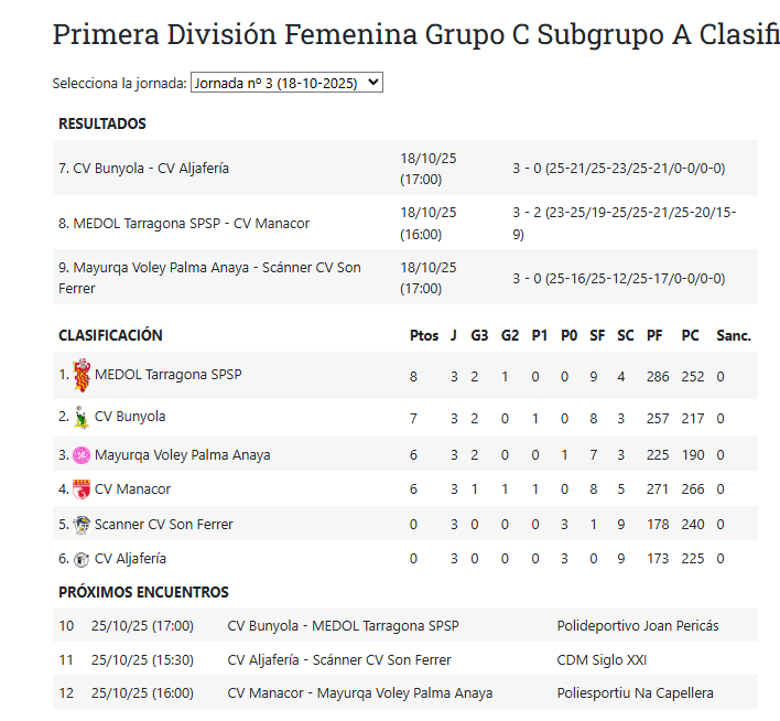 Resultados y clasificación de la jornada