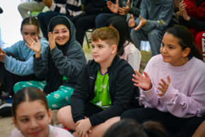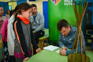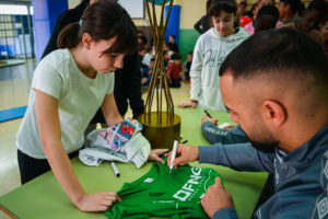 Tras el turno de preguntas, llegó el momento de inmortalizar la jornada. Los jugadores se hicieron una gran fotografía de grupo con todo el alumnado y, como es tradición, firmaron camisetas, mochilas y libretas para que cada niño pudiera llevarse un recuerdo de una mañana tan especial.
