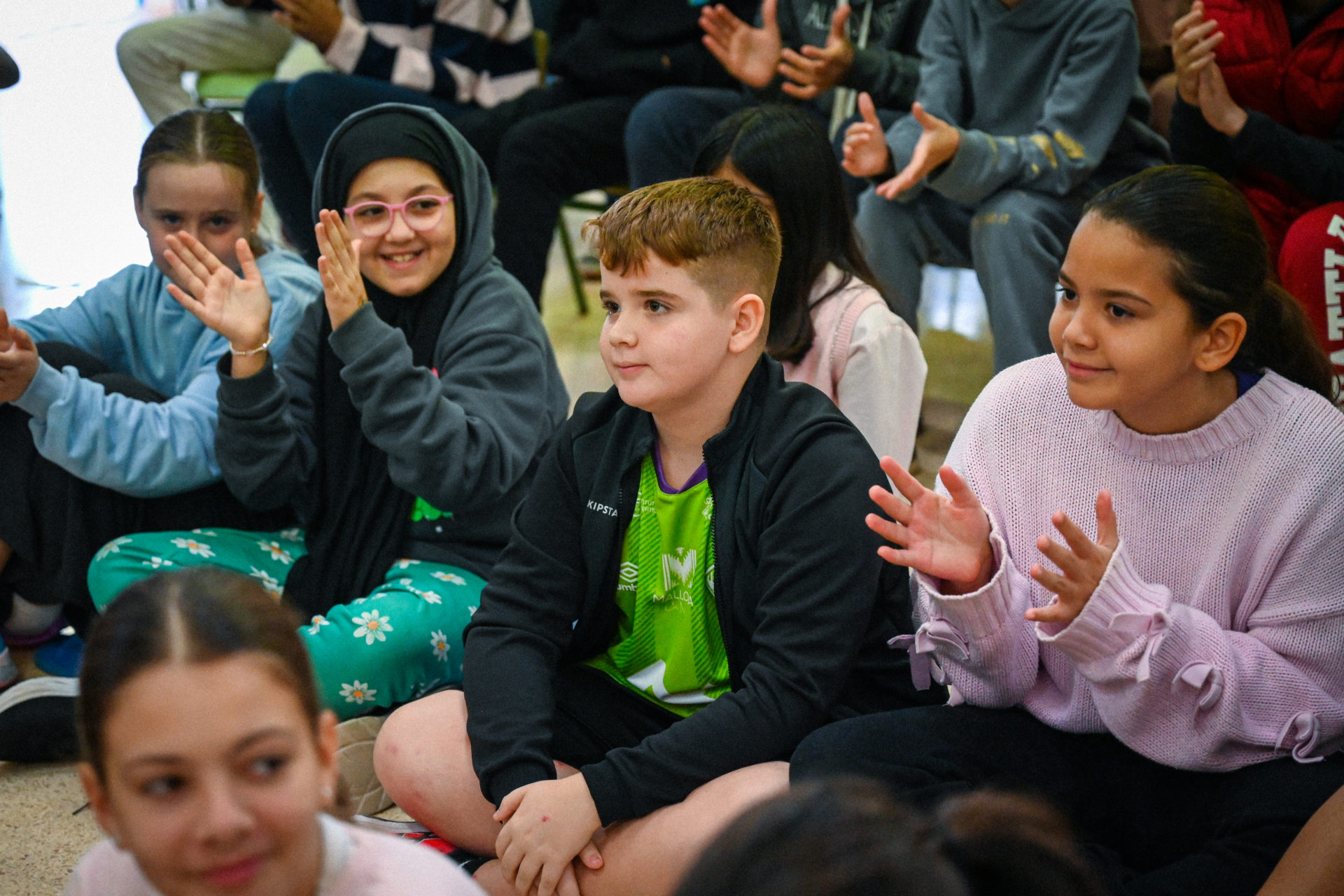La actividad ha comenzado con una charla impartida por Martín López, responsable del área social del club, que ha abordado la importancia de mantener hábitos saludables, la convivencia y los valores que transmite el deporte. Un mensaje que ha servido de antesala para el momento más esperado por los jóvenes: la intervención de los jugadores.