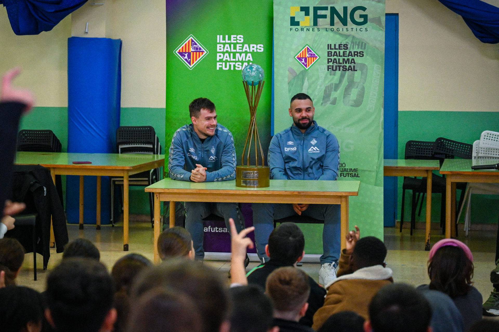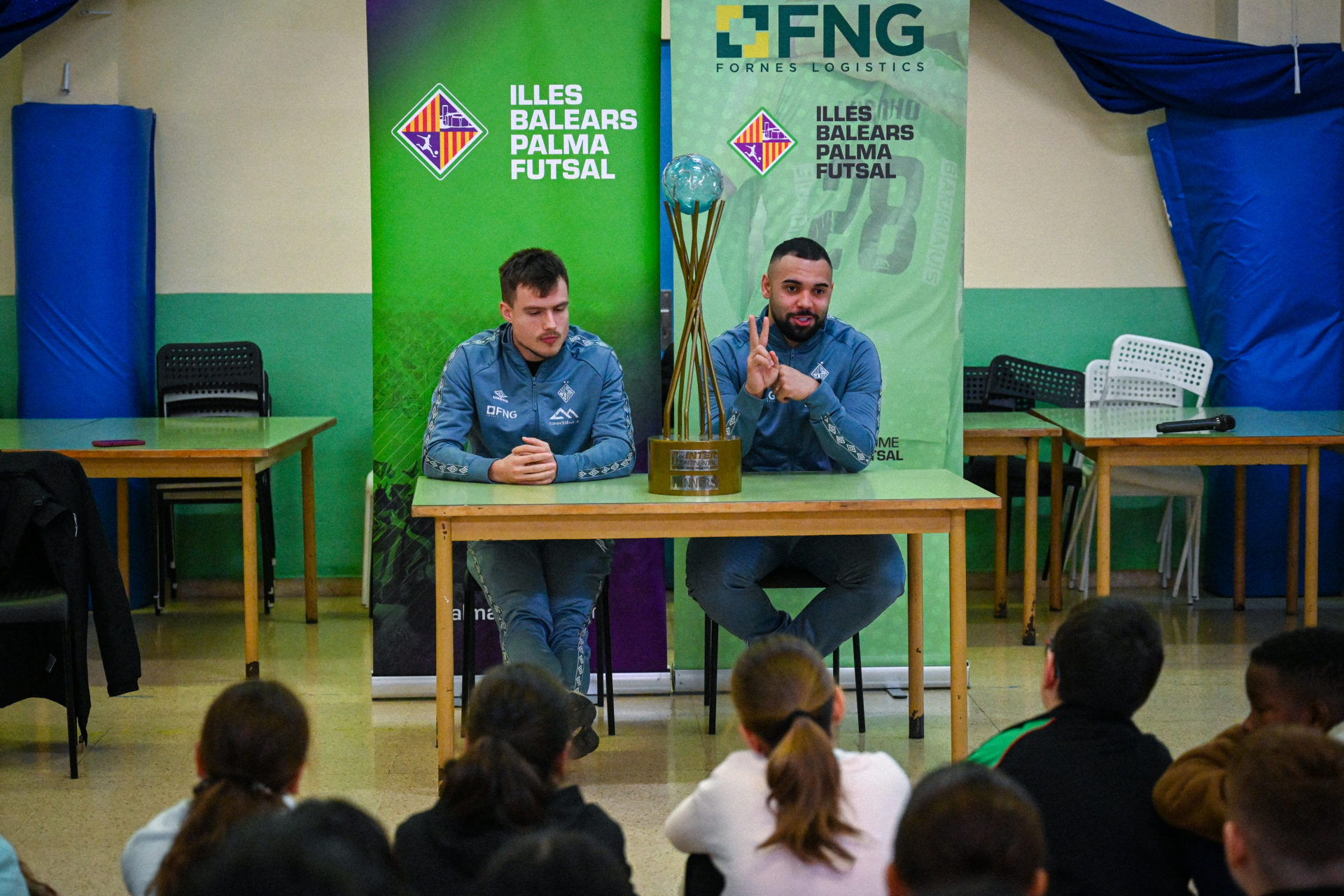 Machado y Dennis han respondido a las preguntas de los estudiantes, que no solo demostraron su curiosidad, sino también su creciente vínculo con el Illes Balears Palma Futsal. Cada vez son más los alumnos —e incluso profesores— que siguen al equipo, algo que se refleja en las bufandas, camisetas y colores del club que comienzan a ser habituales en las aulas durante las visitas. Y en Es Rafal Nou no fue diferente.