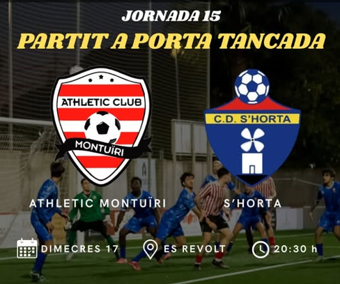 Comunicat ; ATHLETIC MONTUIRI- CD S ´HORTA a Porta Tancada