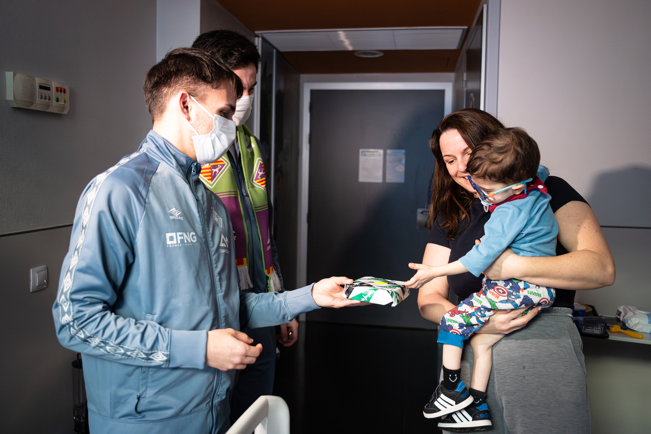 Los jugadores recorrieron diferentes áreas del centro, visitando a pequeños desde recién nacidos hasta adolescentes de 15 años, a quienes entregaron una variedad de juguetes de El Corte Inglés y bufandas del club. Más allá de los regalos, los futbolistas compartieron charlas, risas y momentos de complicidad tanto con los niños como con sus familias, tratando de hacer más llevadera su estancia en el hospital.