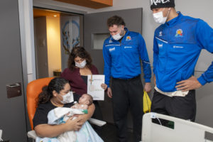 Esta mañana la plantilla del Fibwi Mallorca Bàsquet Palma ha vivido uno de los momentos más especiales de la temporada. El equipo mallorquín se ha desplazado hasta el Hospital Universitario de Son Espases para llevar a cabo la tradicional visita navideña a la planta de Pediatría para compartir la mañana con los niños y niñas ingresados en dicha zona del complejo hospitalario. Acompañados por Pedro Vidal, responsable de los servicios médicos del club y por los representantes de Coinbroker Mallorca, encargados de aportar los regalos entregados por los jugadores a las familias y a los niños y niñas. Así, a lo largo de parte de la mañana, todos los jugadores han ido visitando las habitaciones entregando los obsequios y brindando sonrisas a los más pequeños y pequeñas en estos días tan especiales. “Para nosotros es un acto muy importante venir y tratar de alegrarle a los niños porque sabemos que están en una situación difícil. Es algo que nos llena y lo hacemos con la mejor de las intenciones”, ha explicado Brian Vázquez que ha agregado: “Los niños nos han recibido con mucha alegría. Es la segunda vez que hago esta visita y los niños y niñas y los padres nos reciben con mucha alegría”.