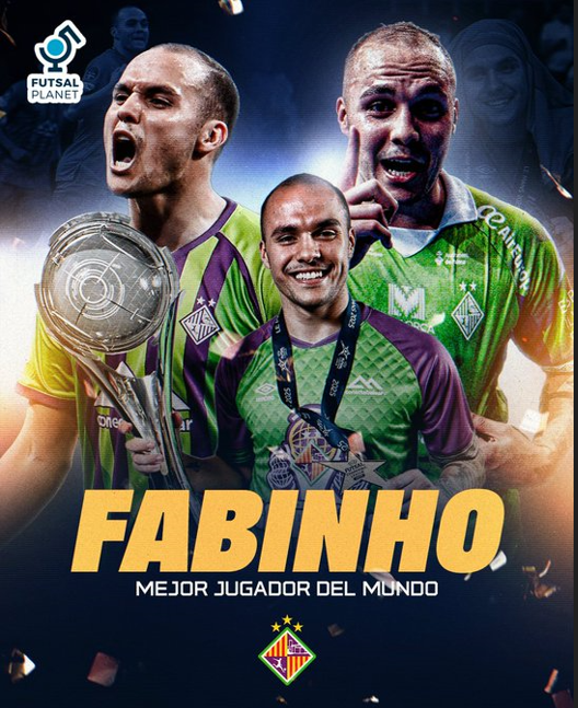 7 enero 2026 | Por lorenzo | Categoria: Fútbol, Fútbol SalaFabinho ha sido reconocido por FutsalPlanet como el mejor jugador del mundo en 2025. El brasileño completa asà un año extraordinario con el Illes Balears Palma Futsal, con el que se proclamó campeón de la UEFA Futsal Champions League y de la Copa Intercontinental, además de firmar unos números sobresalientes —40 goles y 20 asistencias—, sumando también participación y éxitos con la selección brasileña.