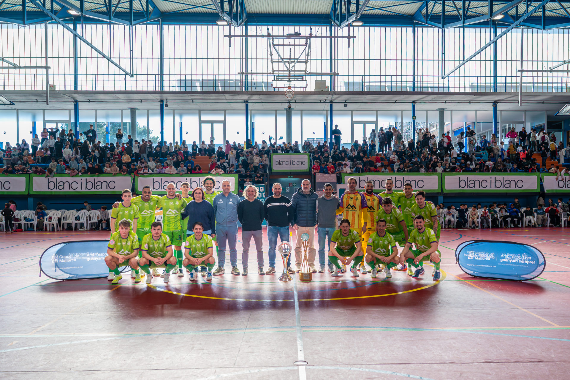 El punto culminante de la jornada llegó con un partido final en el que una treintena de niños y niñas se enfrentaron a todo el primer equipo del Illes Balears Palma Futsal, logrando incluso imponerse en un ambiente de risas y celebración. La actividad concluyó con una gran foto de familia junto a los escolares, autoridades y patrocinadores que hacen posible el proyecto.