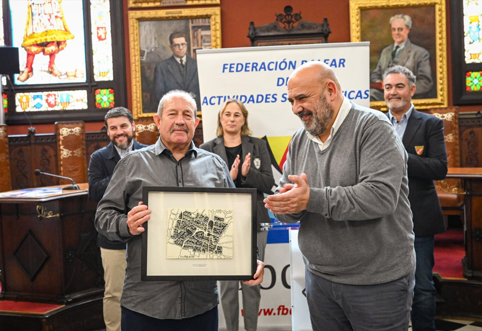 Durante el acto, celebrado en el Salón de Plenos del Ajuntament, se ha rendido homenaje a Juan Francisco Vargas Suárez por más de 25 años de dedicación, colaboración y compromiso con la pesca submarina, en reconocimiento a su valiosa contribución al crecimiento y la consolidación de este deporte a través de la Federació Balear d’Activitats Subaquàtiques.