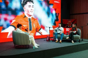 18 febrero 2026 | Por lorenzo | Categoria: Fútbol, Real MallorcaJan Virgili ha sido el protagonista de la tercera entrega de la segunda temporada del podcast de Endimoniats. En una Sala de Conferencias en la que alrededor de 40 personas de todas las edades se quisieron dar cita, el jugador del RCD Mallorca habló de distintos temas de su trayectoria vital y profesional.