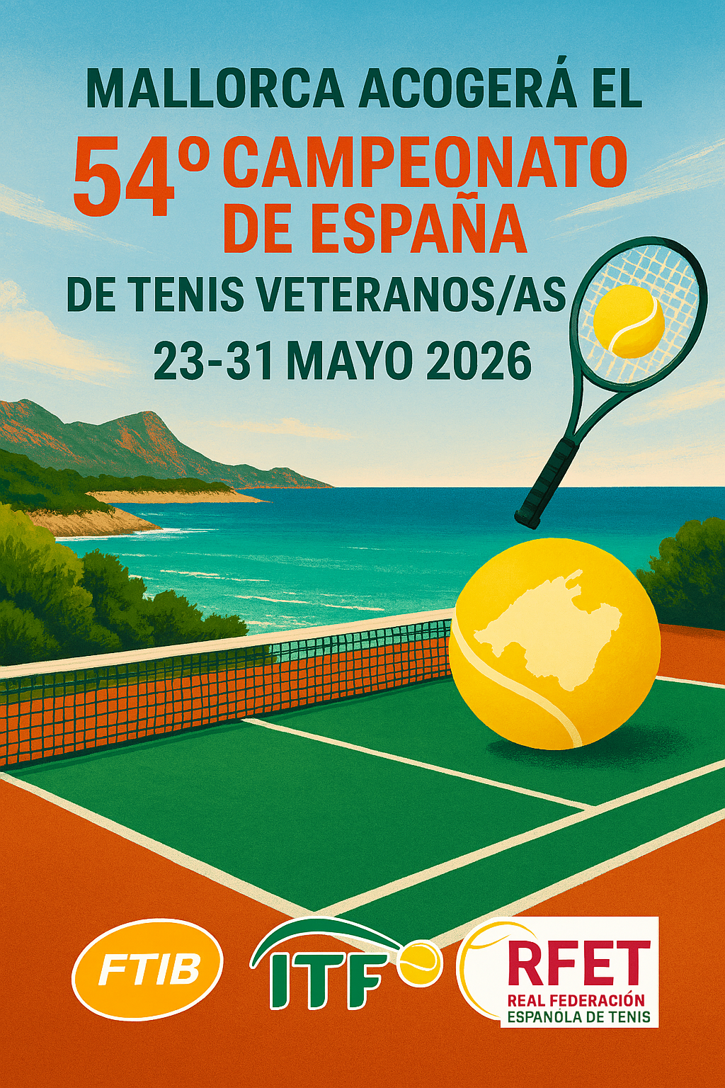 5 marzo 2026 | Por lorenzo | Categoria:La Real Federación Española de Tenis (RFET) ha anunciado la celebración del 54º Campeonato de España de Tenis Veteranos/as Individual y Dobles, que tendrá lugar del 23 al 31 de mayo de 2026 en Mallorca. El torneo reunirá a jugadores y jugadoras de distintas categorías de edad y se disputará en tres sedes diferentes de la isla.
