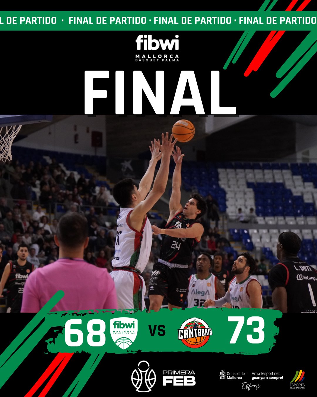 El Fibwi Mallorca Bàsquet Palma ha caído por 68-73 ante el Grupo Alega Cantabria en un partido en el que el mayor acierto visitante ha sido clave. Arrancaban intensos los de Pablo Cano anotando un parcial de 7-2 tras los primeros minutos de partido. El buen incio de los mallorquines se prolongaba con un favorable 13-7 en el marcador. Los visitantes reaccionaban levemente y ponían el duelo en 16-11 obligando a Pablo Cano a parar el encuentro. El partido, como era de esperar, se vivía con una tremenda igualdad siendo el Fibwi Mallorca Bàsquet Palma el que lograba ponerse con 22-17 en el marcador cerrándose el primer parcial con un ajustado 24-20